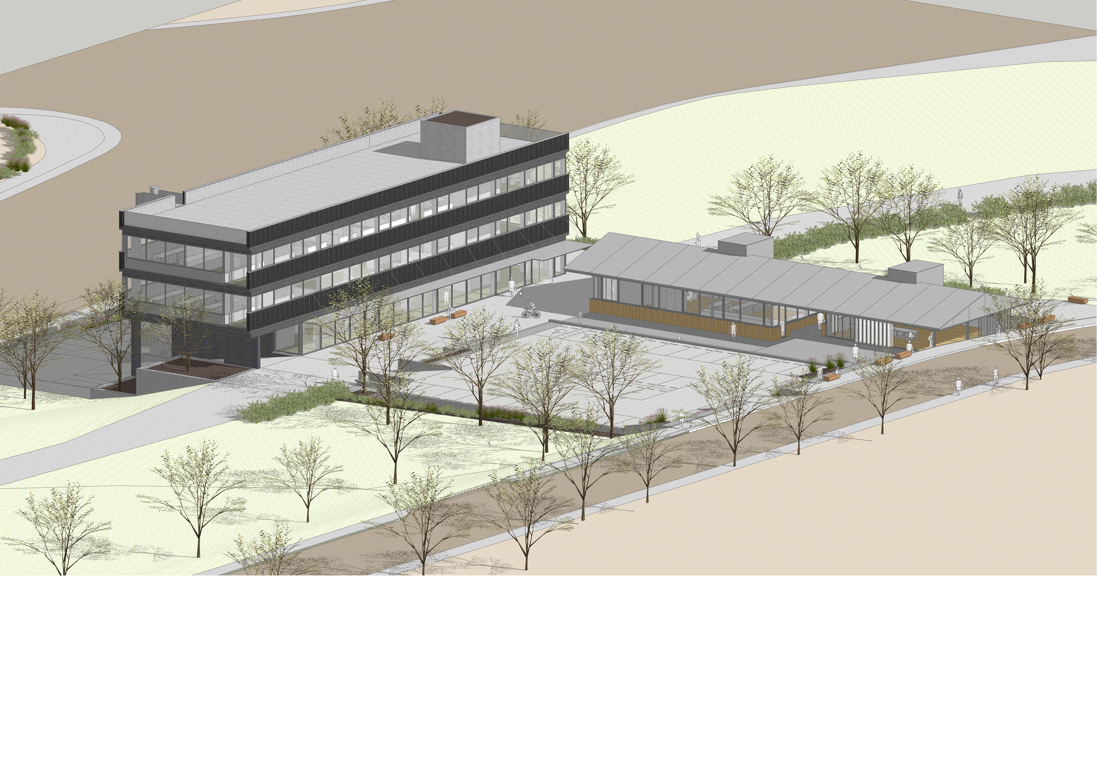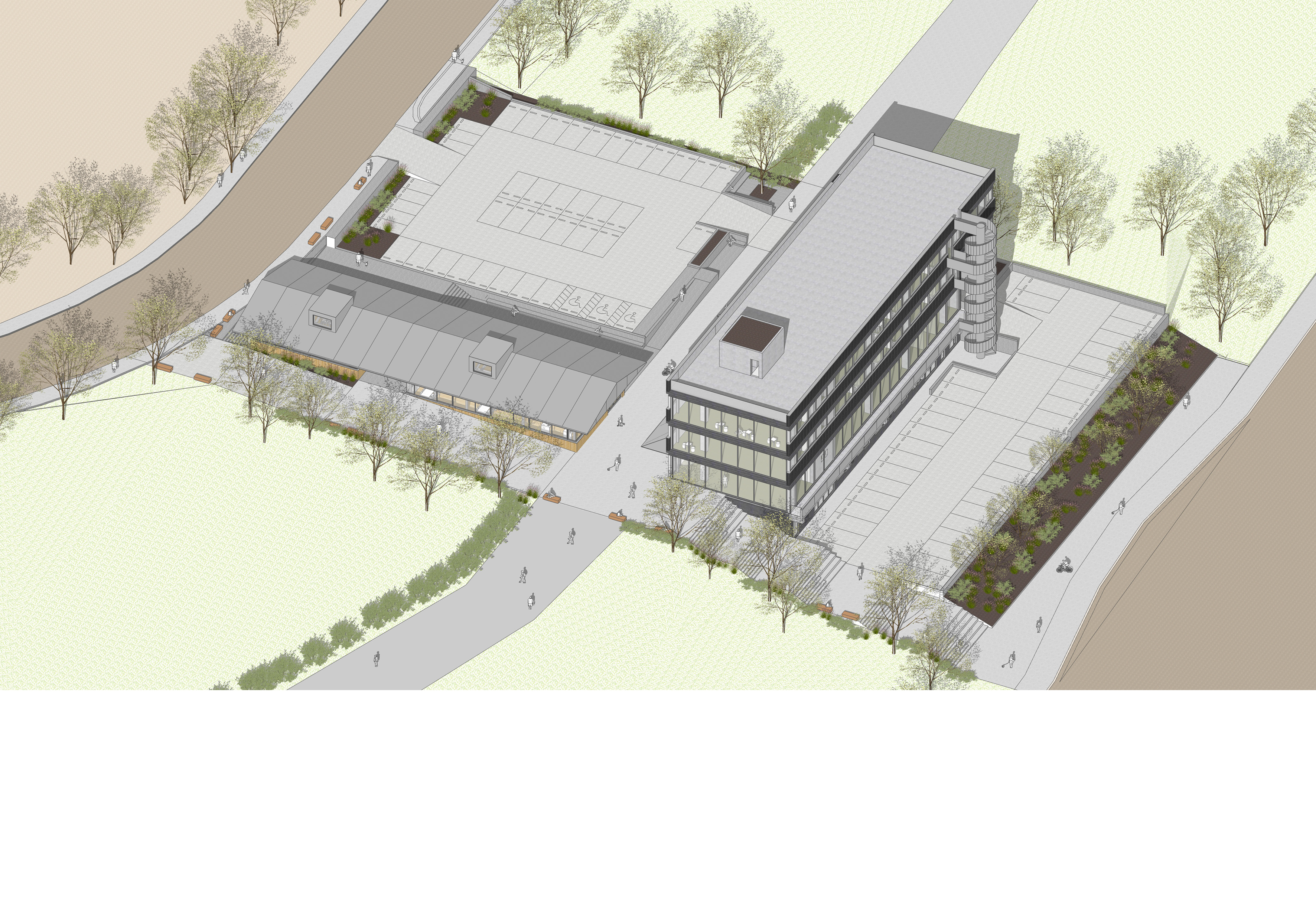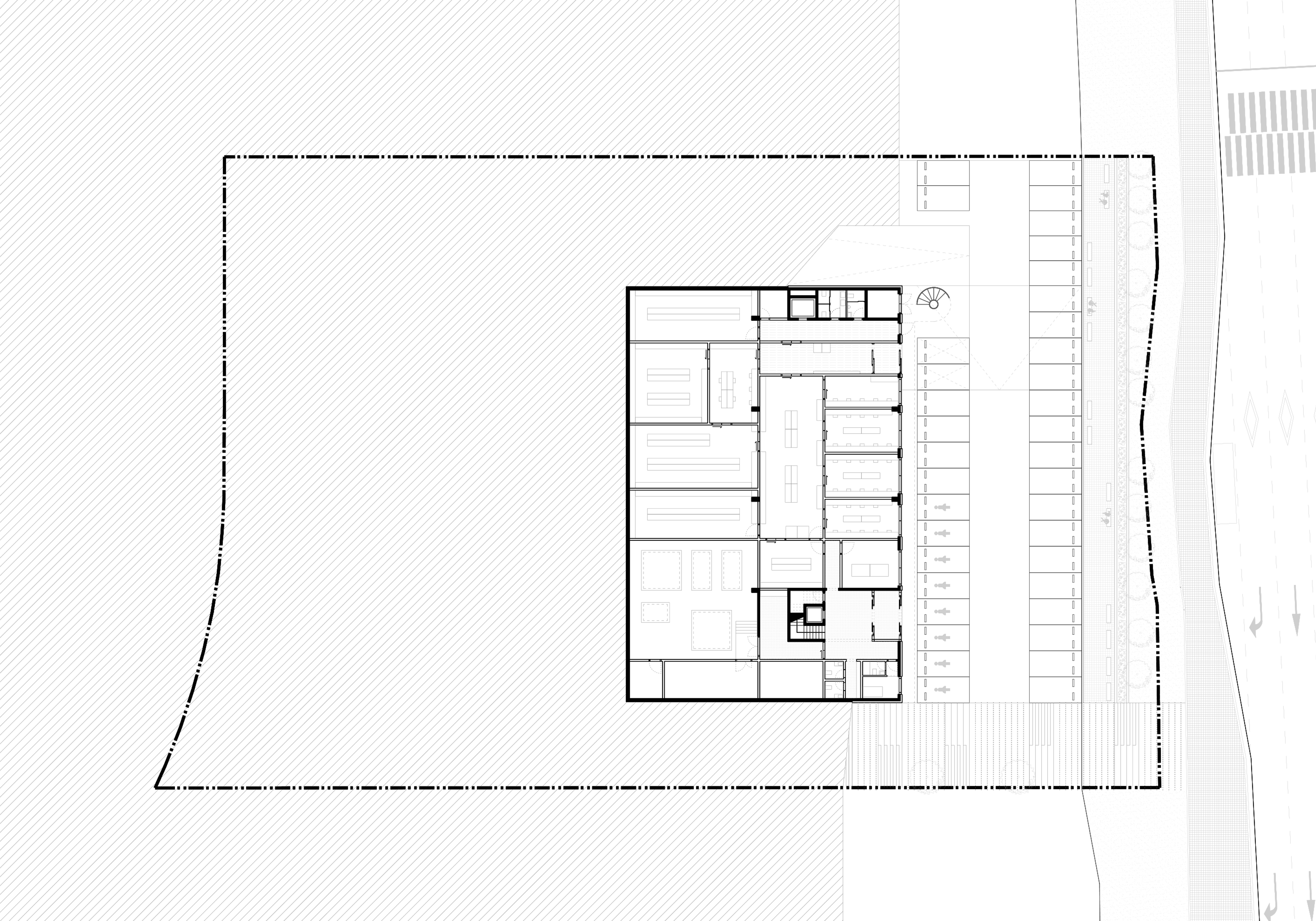 한껏 뒤로 물러서 남북방향으로 길고 놓여진 하나의 매스의 설정을 통해 하나의 연구소로 바라보고 있고 일반 방문객과 대면 편의가 필수적인 프로그램을 끄집어내어 새롭게 구성한 것 또한 설계자의 상상력에 그치지 않고 이럴 수 있음에 공감하게 하는 힘을 갖고 있다. 솔직하고 편안하게 전면에 방문객 주차, 그 영역에서 한개층 내려와 설정된 직원 및 작업 주차영역 설정 등은 어정쩡한 대지의 물리적 조건과 모호한 주변 개발 조건들을 한번에 극복하는 탁월한 제안이다. 임의로 조성된 기존 땅의 조건은 공사비 한계를 직시하고 적극적인 조정을 하지않겠다고 선언하고 있다. 하나의 연구동 개념으로 접근한 것 또한 그럴 수 있음으로 읽힌다. 서측면은 부차적 건축 외피 요소 없이 복도의 할애로 일사조건이 제약조건으로 작동하지 않게 하였고 동측의 근사한 풍경 접촉면을 대부분의 실에 최대한 부여한 장점으로 역전된다. 현실적인 법적 제약조건으로 보일 수 있는 오브제형 원형계단은 얼마든지 현 계획안내에서 솜씨있게 조정 가능해보이기에 약점으로 보지 않았다.’